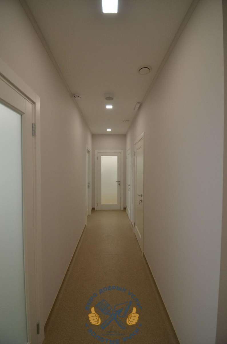 Этот коммерческий объект выполнен от состояния черновой отделки в помещении от застройщика. Нами выполнялся полный цикл работ, кроме вентиляции.